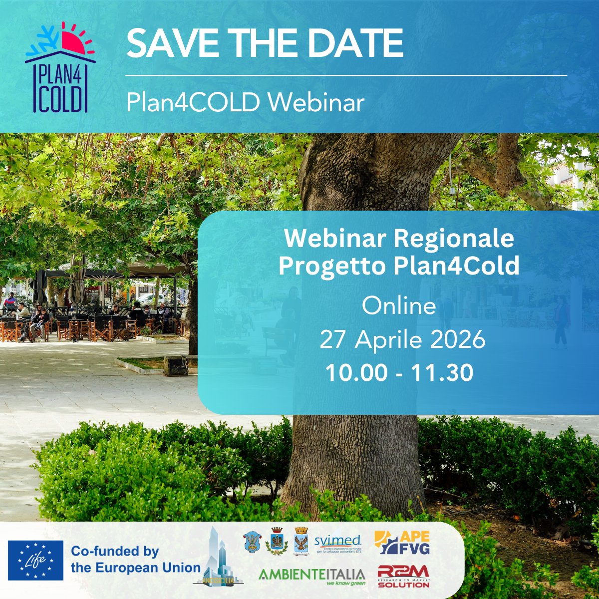 Il webinar è organizzato nell’ambito del progetto LIFE Plan4Cold che con 15 partner da diversi Paesi dell’Europa meridionale mira a supportare i Comuni nella redazione di piani energetici locali per il riscaldamento e il raffrescamento.